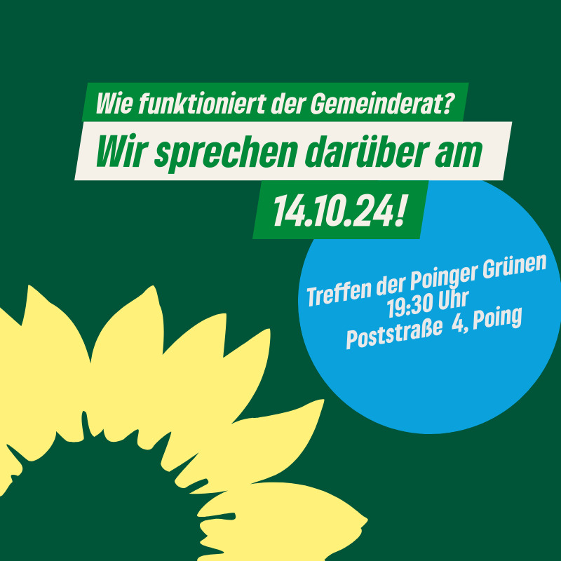 Beim nächsten Treffen der Poinger Grünen berichten unsere Fraktionsmitglieder über ihre Tätigkeit im Gemeinderat.