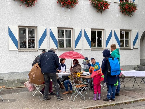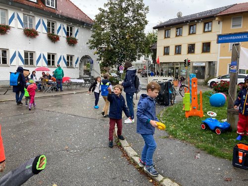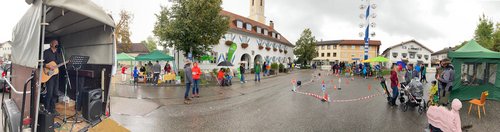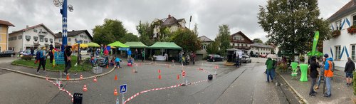 Unter großen Pavillons versammelten sich an der Westseite des Platzes Infostände, so etwa zum Radentscheid Bayern, den Glonner Autoteilern oder der Solidarischen Landwirtschaft. Man konnte dort auch seine Ideen zur Umgestaltung des Marktplatzes auf Papier bringen oder sich beim Aktionskreis Energiewende Glonn e.V. über den Fortschritt der Glonner Projekte informieren.