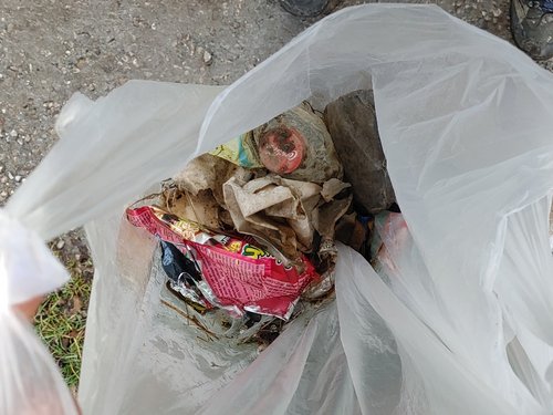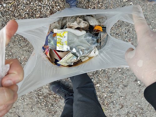 Alle waren überrascht, wir viel da rumliegt. Schon nach einer Stunde waren fast 5 kg eingesammelt. Größere und kleinere Teile, vor allem Verpackungen, Schnüre, Kleidungsstücke, Dosen, Hartplastikteile.