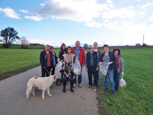 Zwei Hunde, drei Kinder und 10 Erwachsene machten sich auf Einladung der Grünen auf zum Plogging* rund um Aßling. Auf ihrer Herbstwanderung in der Umgebung von Aßling, sammelten sie nebenbei Müll auf.