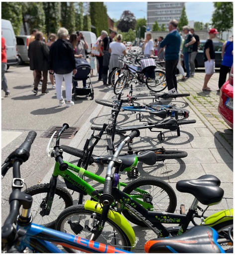 Gleich neben unserem Pavillon hatten wir den etablierten Poinger Radl-Flohmarkt wieder aufleben lassen. Nach mehreren Jahren Pause, konnten wieder gebrauchte Fahrräder angeboten und gekauft werden. Die Resonanz war riesig! Von über 30 Fahrrädern fanden viele einen neuen Besitzer. Zum Glück standen uns freiwillige Helfer vom Repair-Cafe und von der gemeinnützigen Poinger Fahrradwerkstatt zur Seite. Sie sorgten dafür, dass die Fahrräder in möglichst gutem Zustand verkauft werden konnten. Vielen Dank für eure Hilfe!