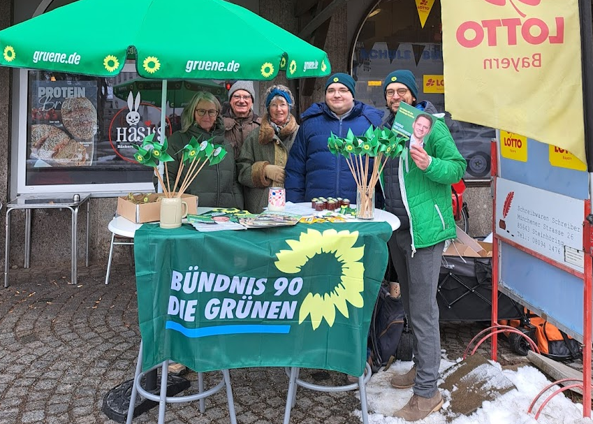 Am vergangenen Samstag, dem 31.1., haben wir, der Ortsverband Steinhöring, mit einem Infostand beim Bäcker Hasi gezeigt, wie lebendig und lecker Nachhaltigkeit sein kann! Trotz der anhaltend tiefen Temperaturen war die Stimmung gut. Die vielen interessanten Gespräche haben gezeigt, wie wichtig den Steinhöringern grüne Themen wie Klimaschutz, bezahlbares Wohnen und der demokratische Werteerhalt sind.