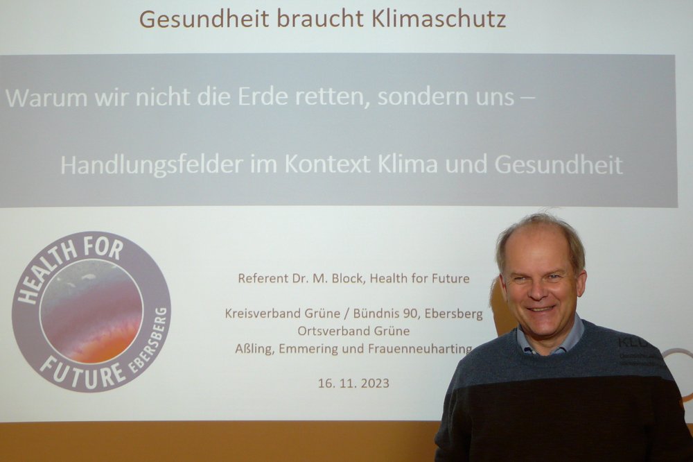 Den „Fußabdruck verkleinern!“ und den „Handabdruck vergrößern!“. Dr. Marc Block erläuterte den interessierten Zuhörern im Aßlinger Ratszimmer wirkungsvolle Handlungsfelder im Kontext von Klima und Gesundheit.