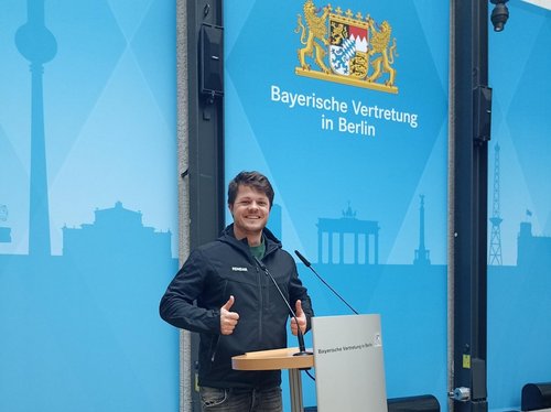 Der nächste Tag begann mit einer Bustour durch Berlin, wieder moderiert von dem Berliner Original, das uns anfangs empfangen hatte. An einem der bekanntesten Mahnmale, dem Überbleibsel der Berliner Mauer, wurde ein Stopp zum Gedenken der Opfer eingelegt. Zum Mittagessen lud man in die bayerische Landesvertretung, wo in Berlin bayerische Werte von sämtlichen Parteivertretungen aus Bayern hochgehalten werden - mit einem Bier in der Hand.
