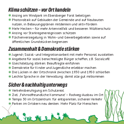 Schon seit mehr als 35 Jahren sind wir Anzinger Grüne im Gemeinderat