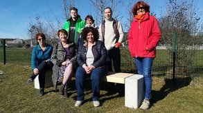 Dabei bestaunten sie auch die drei von Gemeinderat Konrad Eibl gebauten neuen Bänke für den Spielplatz.