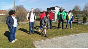 Bei strahlendem Sonnenschein und mit viel Spaß haben die Aßlinger Grünen zusammen mit der Landratskandidatin Waltraud Gruber die Boule-Kugeln in Position gebracht.