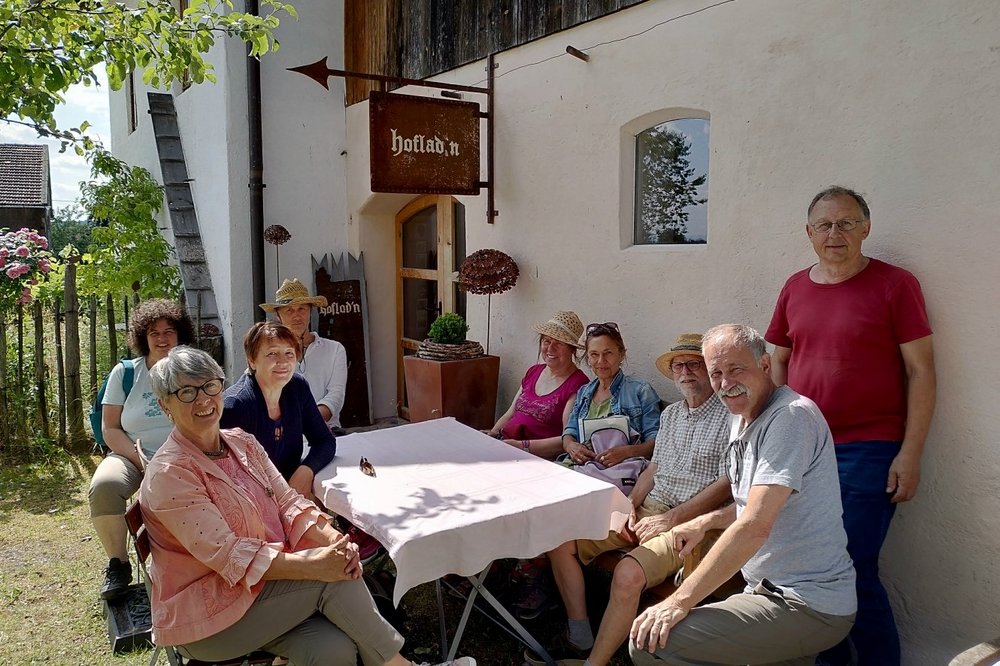 Zehn Leute sind der Einladung  des OV Aßling-Emmering-Frauenneuharting gefolgt und wanderten bei schönstem Wetter von Pörsdorf aus zu verschiedenen Hofläden. Brotzeit gabs im attraktiven Hofladen des Egglhofes in Straußdorf.