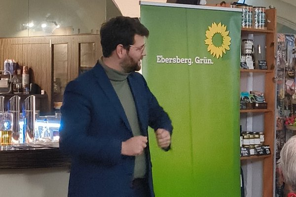 30.10.25 - Rund 35 Bürgerinnen und Bürger kamen ins Café Mala in Ebersberg, um mit Jojo Becher, stellvertretendem Fraktionsvorsitzenden der Grünen im Bayerischen Landtag, über Bürokratieabbau und Digitalisierung zu sprechen.