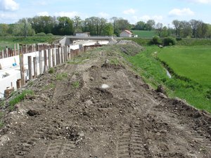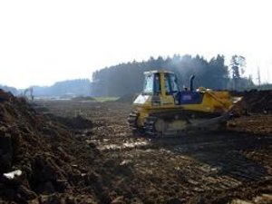 Neue Hiobsbotschaften aus Ebersbergs Süden: Noch lange ist die Südumgehung nicht fertig, da sinkt ihr Straßendamm schon ins Moos! Auf 70 m zwischen der Querungsstelle mit dem Filzenexpress und der neuen Brücke an der Laufinger Allee hat sich der Untergrund bereits um 30 cm gesenkt und muss nun durch so genannte Dammaufschüttungen wieder auf die gewünschte Höhe gebracht werden. Offenbar konnte auch der Einbau einer Textilmatte dieses Absinken der Straße nicht verhindern.