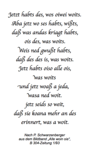 Zu der Straße selbst bemerkt sie ironisch: "Seit zwei Jahren vertieft und verbreitet sich der "Wellengang" auf der etwa 800 m langen Strecke durch das Laufinger Moos. Seit Wochen prangt ein Schild ´Vorsicht Wellenfahrt`. Die zum Teil erheblichen Wellen ersetzen eine Volksfest-übliche Geisterbahnfahrt. Für meine Enkelkinder im Auto ein Höllenspaß"¦ sie zählen 12 Wellen und hoffen auf folgende."