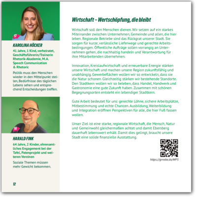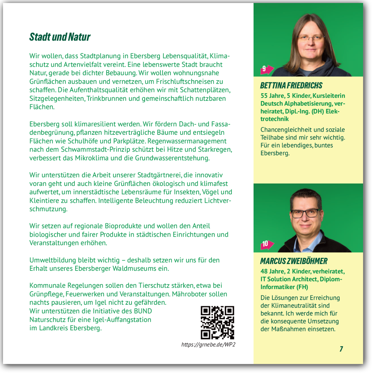Auf dieser Webseite finden Sie ausführlichere Informationen, Hintergründe und konkrete Ideen, als es im gedruckten Wahlprogramm möglich ist. Wir möchten transparent zeigen, wofür wir stehen, wie wir Ebersberg gestalten wollen und laden Sie ein, sich ein eigenes Bild zu machen.