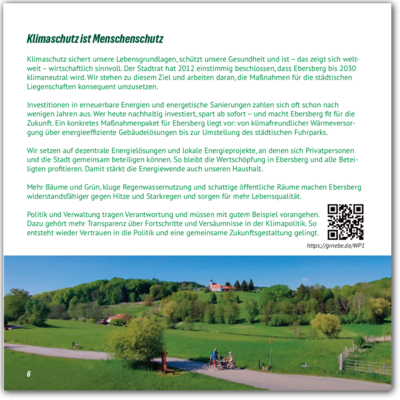 Investitionen in erneuerbare Energien und energetische Sanierungen zahlen sich oft schon nach wenigen Jahren aus. Wer heute nachhaltig investiert, spart ab sofort – und macht Ebersberg fit für die Zukunft. Ein konkretes Maßnahmenpaket für Ebersberg liegt vor: von klimafreundlicher Wärmeversorgung über energieeffiziente Gebäudelösungen bis zur Umstellung des städtischen Fuhrparks.