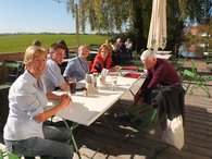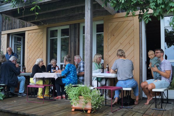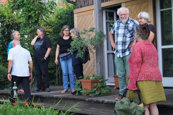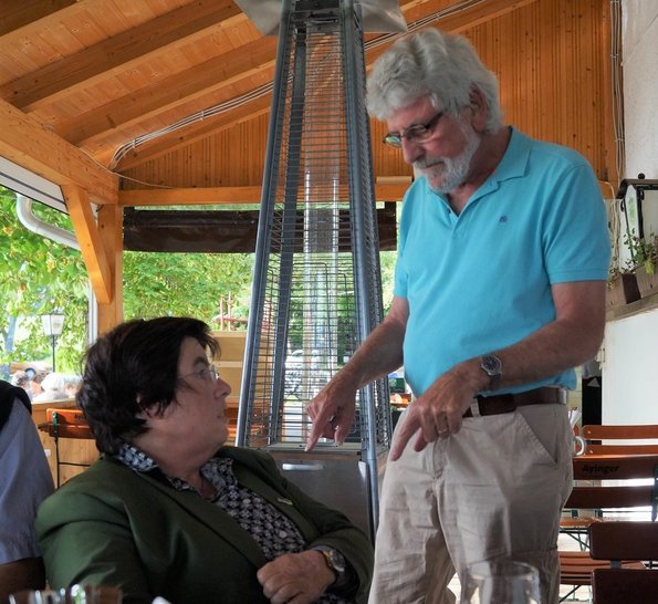 Zu guter Letzt erschien auch noch Thomas von Sarnowski, dem alle von Herzen Glück wünschten zu seiner Kandidatur für den Landesvorsitz. Als längst alle Gläser geleert waren, fing es über dem Weiher an zu blitzen. Die ersten Regentropfen fielen. Zufrieden und bereichert durch so viele Gespräche, die man lange vermisst hatte, machten sich die Gäste auf den Heimweg.