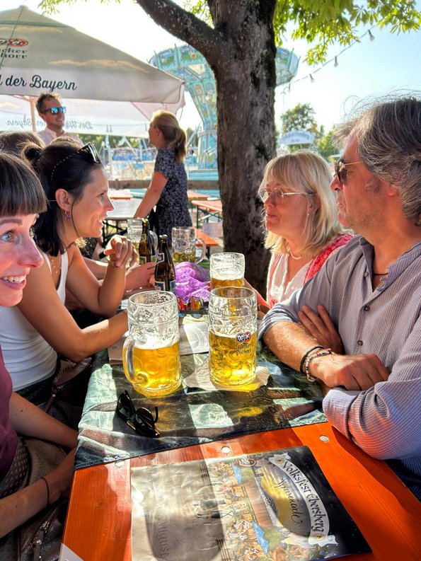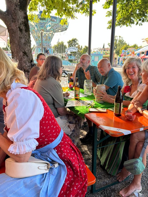 Schon zum 2. Mal fand am 16.08.23 unser grüner Stammtisch auf dem Ebersberger Volksfest statt. In geselliger Runde unserer aktiven Mitglieder diskutierten wir ganz ungezwungen aktuelle politische Themen. Auch unsere Bezirkstagskandidatin Ottilie Eberl, der gesamte Ortsvorstand sowie Stadträtin Susanne Schmidberger waren mit dabei. Mit unserer grünen Tischdecke haben wir Flagge gezeigt. Schön war's mal wieder und sicher nicht das letzte Mal.