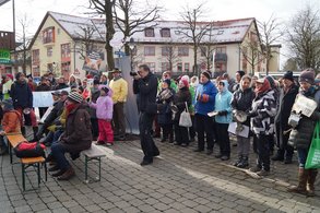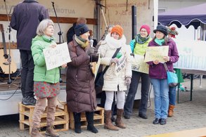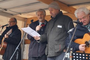 Kochtöpfe und Kochlöffel kamen vielfach zum Einsatz, wenn Redner von Bund Naturschutz, Arbeitsgemeinschaft bäuerliche Landwirtschaft, Landesbund für Vogelschutz und nicht zuletzt Bündnis 90/Die Grünen ihrem Unmut und ihrer Wut über Umweltschäden, Tierleid und schlechtes Essen Ausdruck verliehen. Lautstark unterstützt wurden sie von einer spontan zusammengestellten Band, die mit umgetexteten Liedern („Sag mir wo die Vielfalt bleibt - wann wird man je verstehn?“) Poesie auf den Grafinger Hans-Eham-Platz brachten.