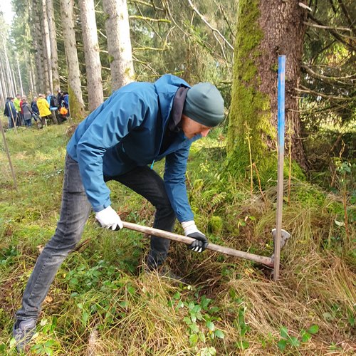 Ca. 80 Leute folgten der Einladung der Energieagentur. Angeleitet von den professionellen Förstern von Bergwaldprojekt e.V. wurden am 19.10.24 standortheimische Bäume im Ebersberger Forst gepflanzt.
