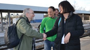 Matthias Gastel, der bahnpolitische Sprecher der Grünen im Bundestag, machte auf seiner Tour mit dem ÖPNV durch den Münchner Osten auf Einladung von Bürgermeisterin Angelika Obermayr eine einstündige Stippvisite in Grafing-Bahnhof am Gleis 2, um mit interessierten Bürgern über die aktuelle Lage des Brennerzulaufs zu sprechen.