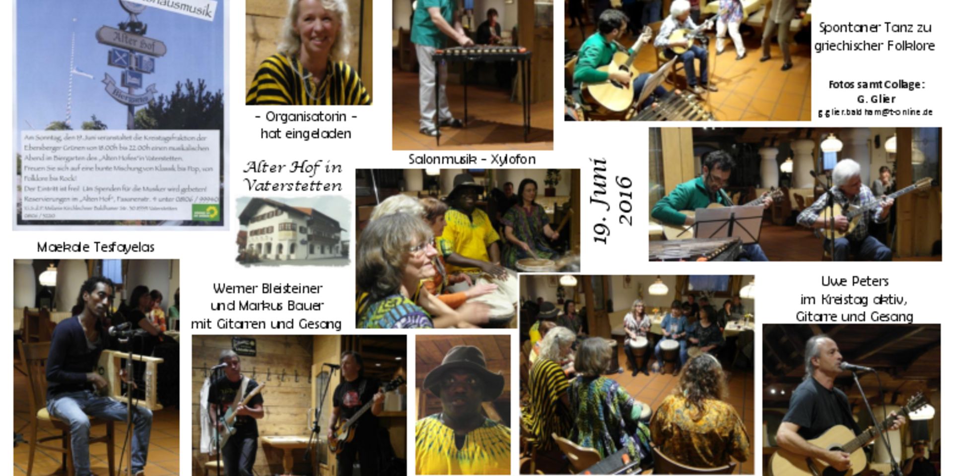 Die Kreistagsfraktion der Grünen von Ebersberg hatte eingeladen und sechs Musiker bzw. Gruppen spielten am Abend des Sonntags, dem 19. Juni dem begeisterten Publikum auf. In Vaterstetten, Alter Hof - Brunnenstube