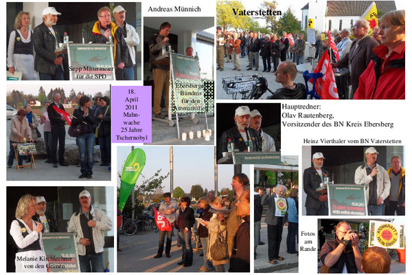18.04.2011 - Vor dem Rathaus begrüssten zunächst die Veranstalter die Versammelten, die Kerzen und auch einige Transparente mitgebracht hatten, um anschliessend mit einer Schweigeminute den Opfern von Kernkraftkatastrophen zu gedenken.Hauptredner Olaf…