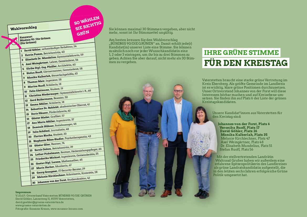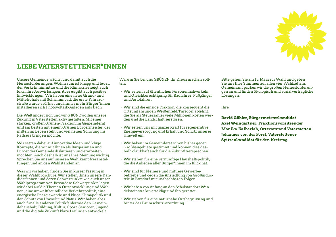 Die Vaterstettener GRÜNEN wünschen eine interessante Lektüre!