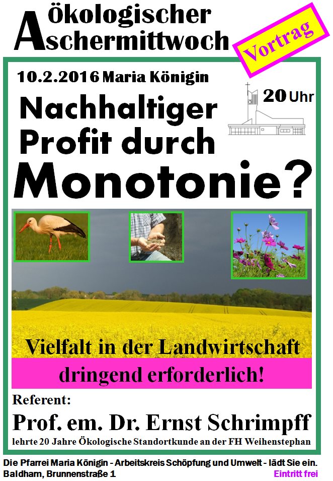 Veranstaltet vom Arbeitskreis Schöpfung und Umwelt in der Pfarrei Maria Königin Baldham, Brunnenstraße 1.