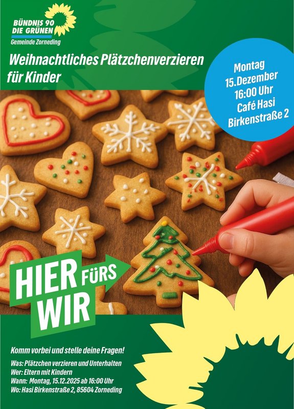 Komm vorbei und stelle deine Fragen! Neben dem Plätzchenverzieren und Weihnachtsgeschichten Vorlesen für die Kinder können die Eltern mit uns ins Gespräch kommen und unsere Kandidaten kennenlernen! Die verzierten Plätzchen dürfen selbstverständlich mit nach Hause genommen werden :)